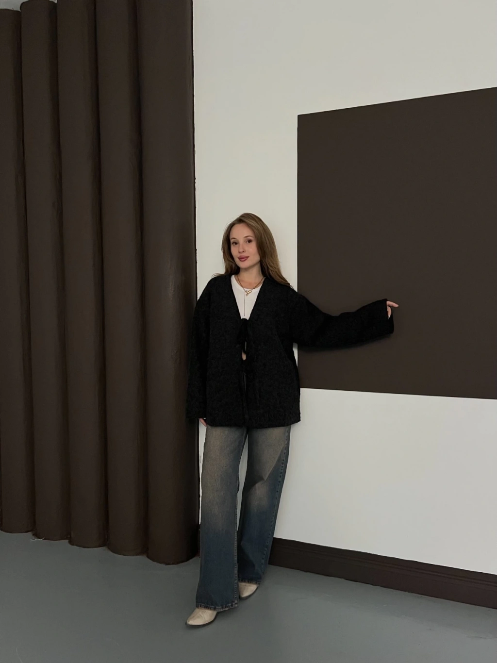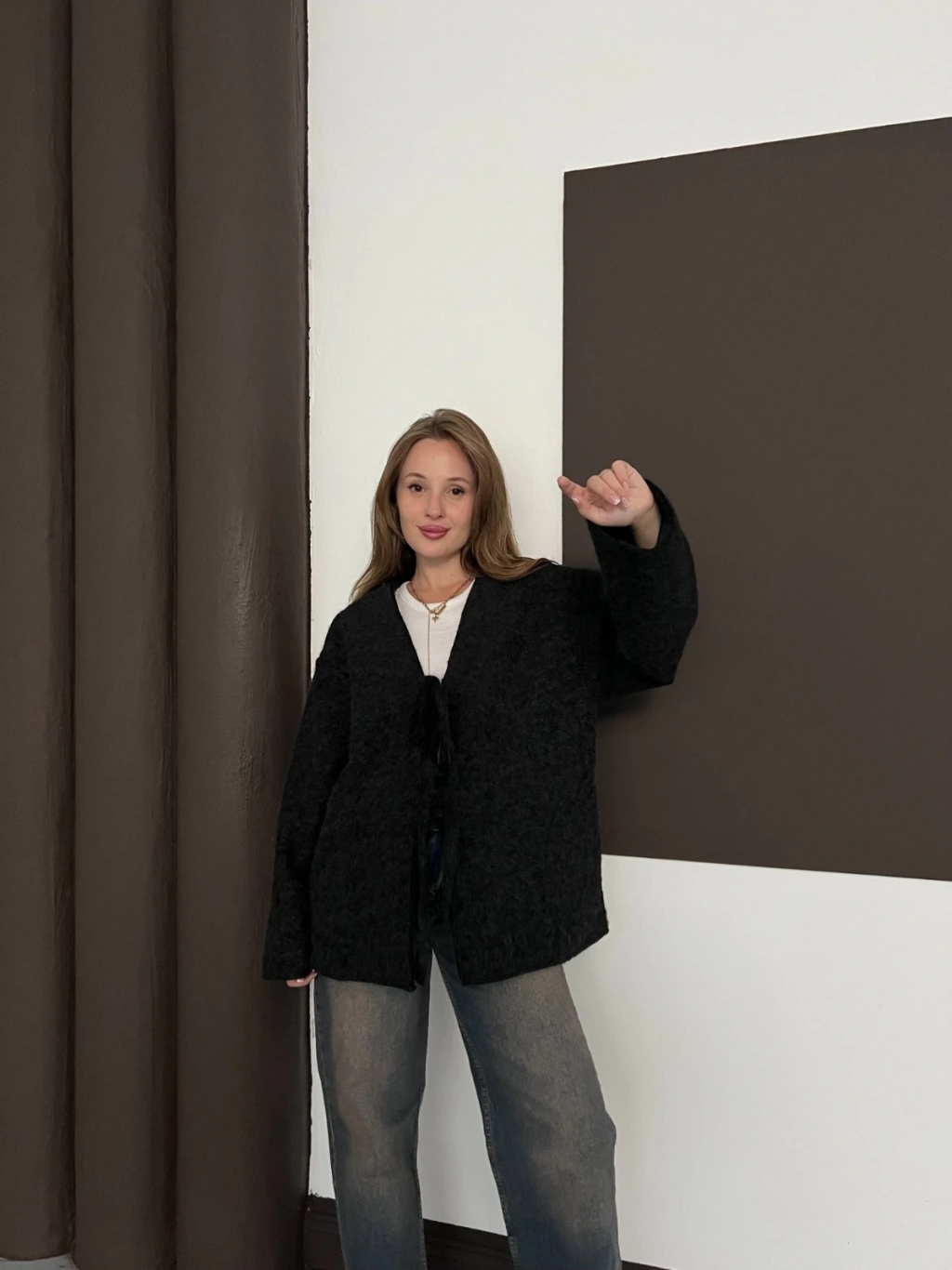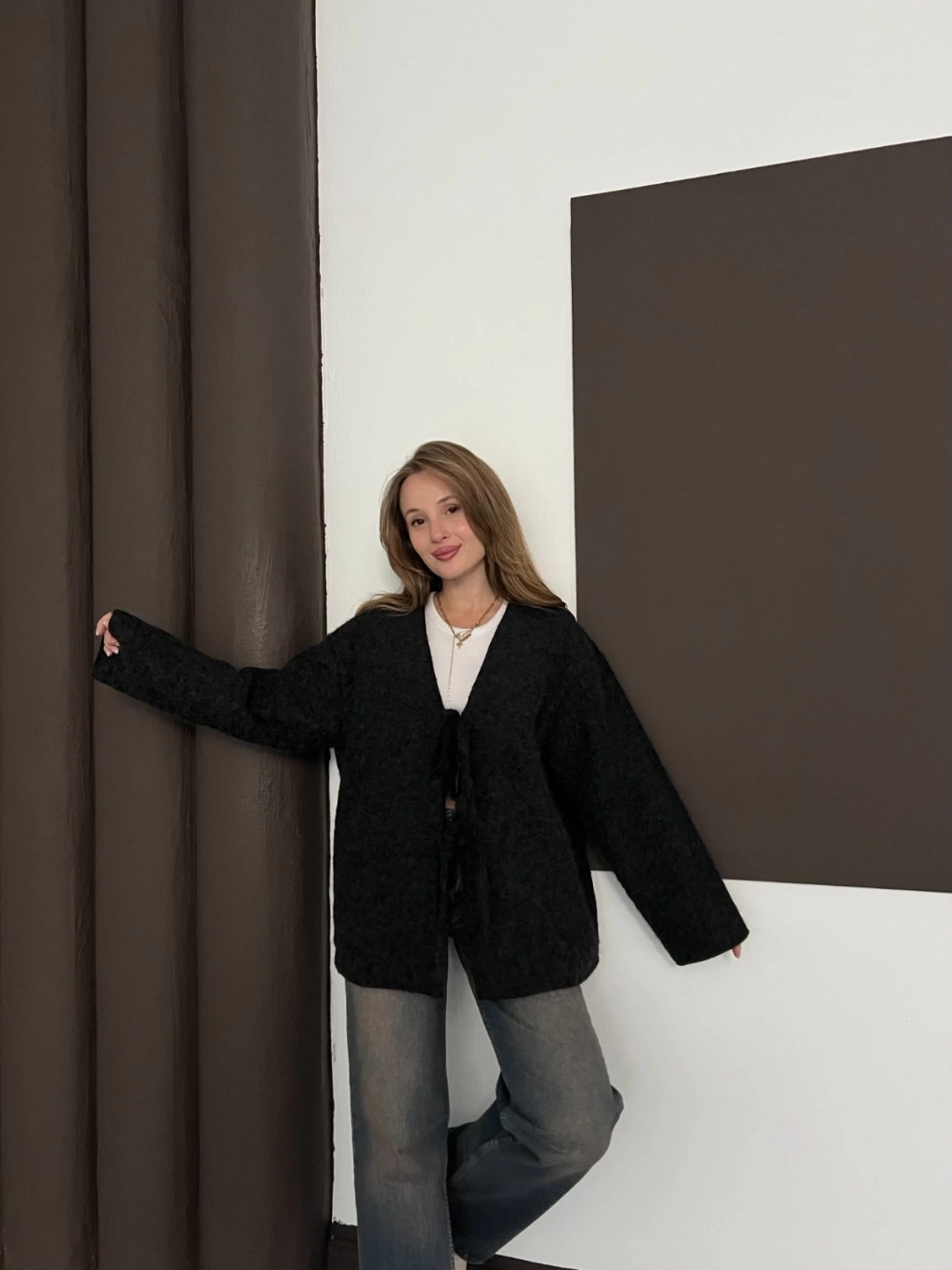 Ön Bağlama Detaylı Kaşe Ceket Siyah