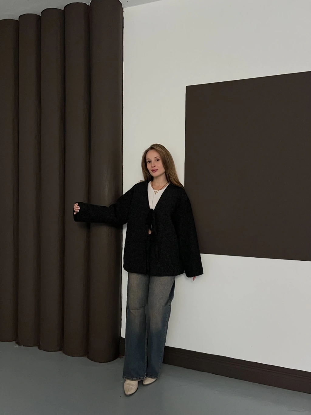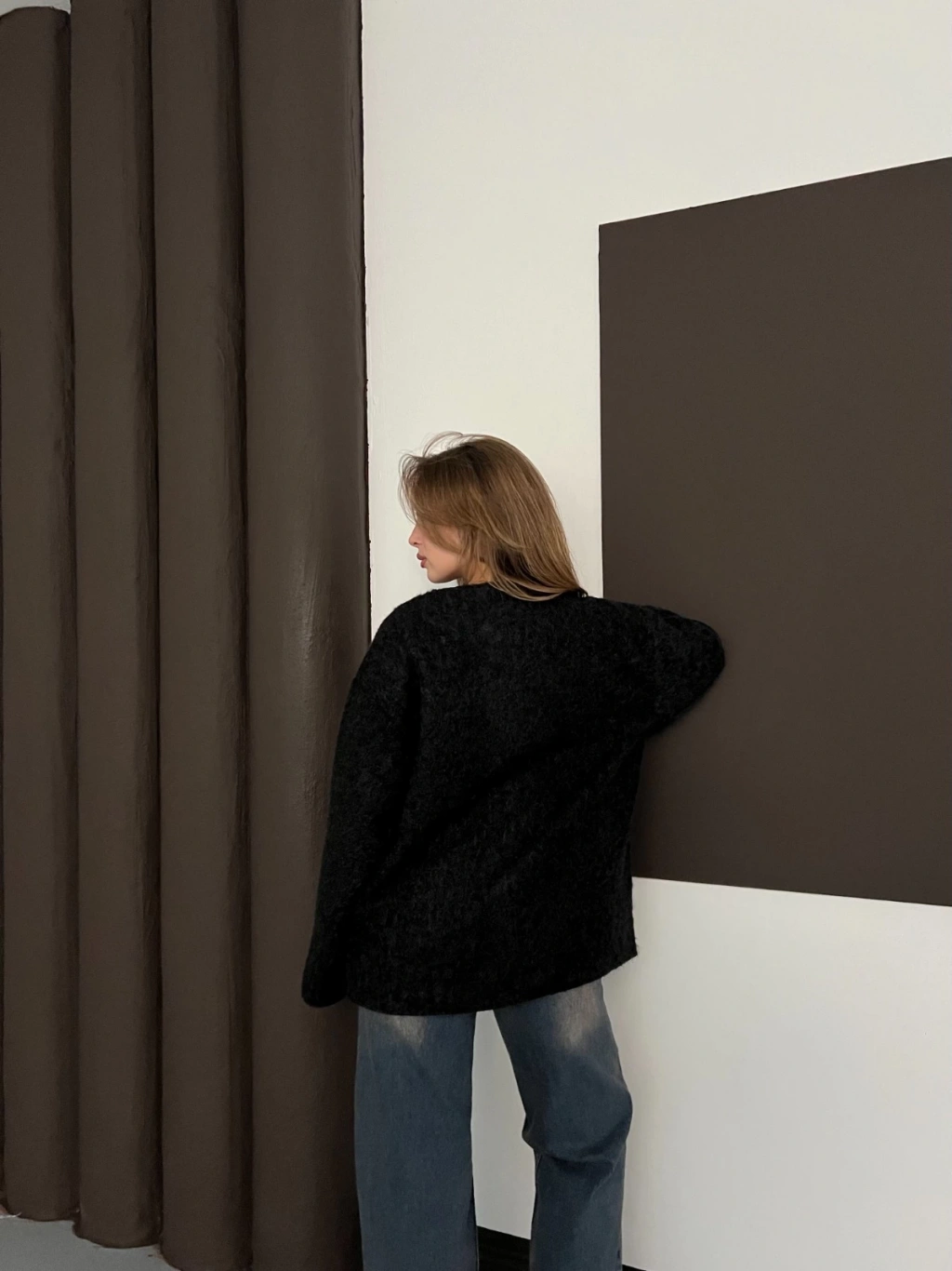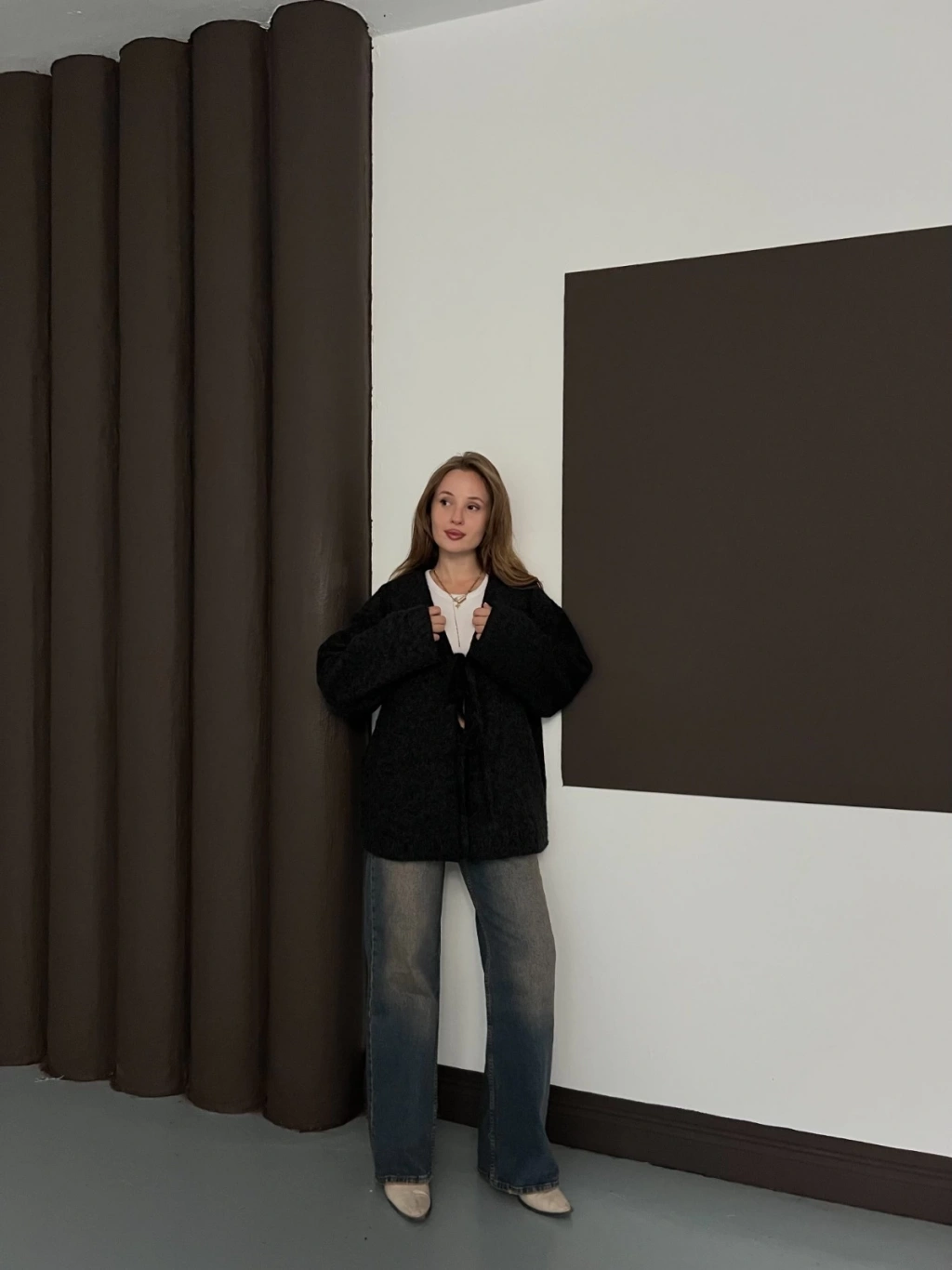 Ön Bağlama Detaylı Kaşe Ceket Siyah