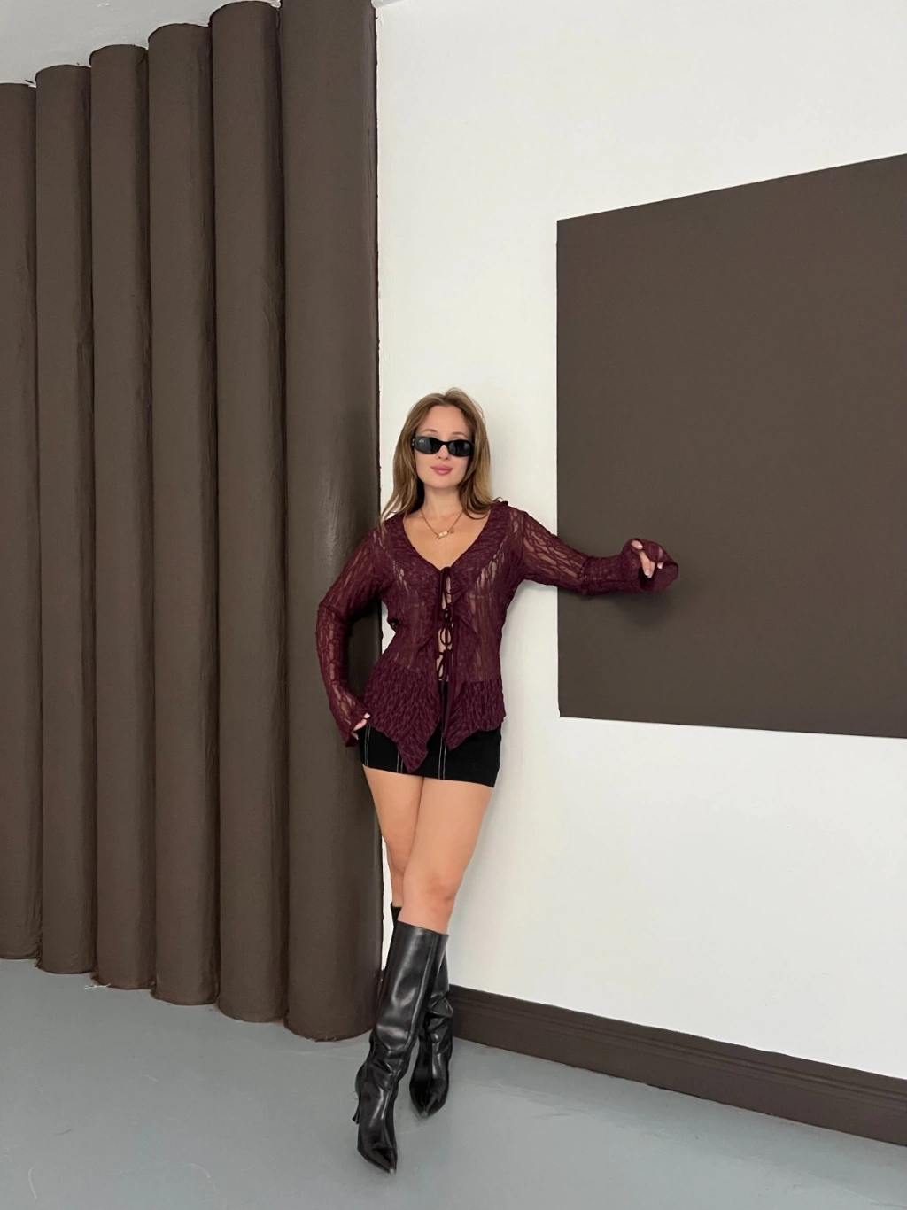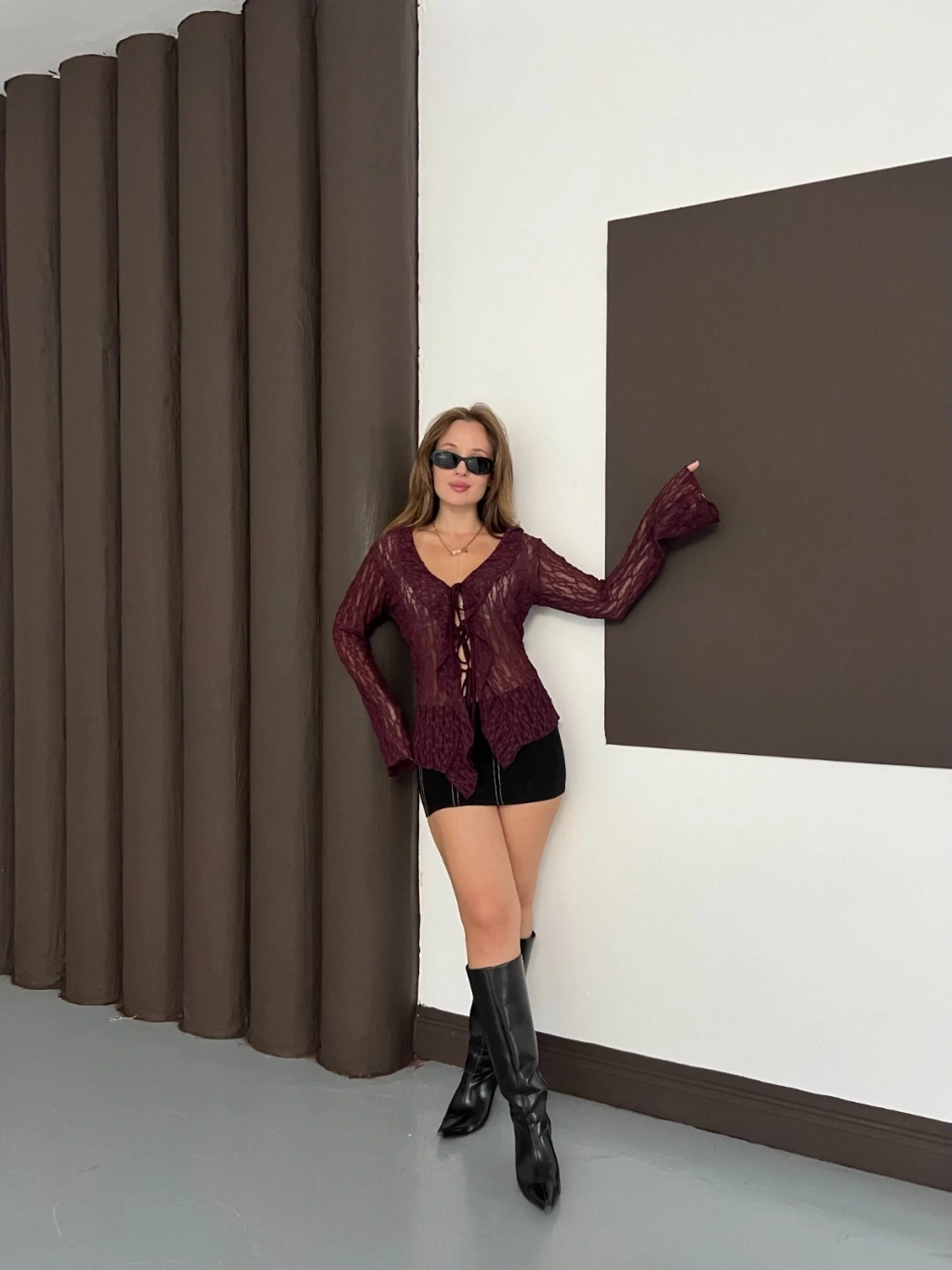 İspanyol Kol Düğme Detaylı Hırkalı Takım Bordo