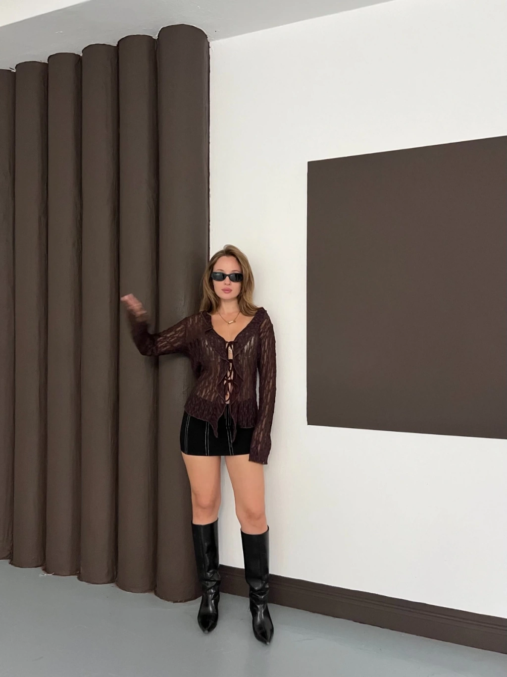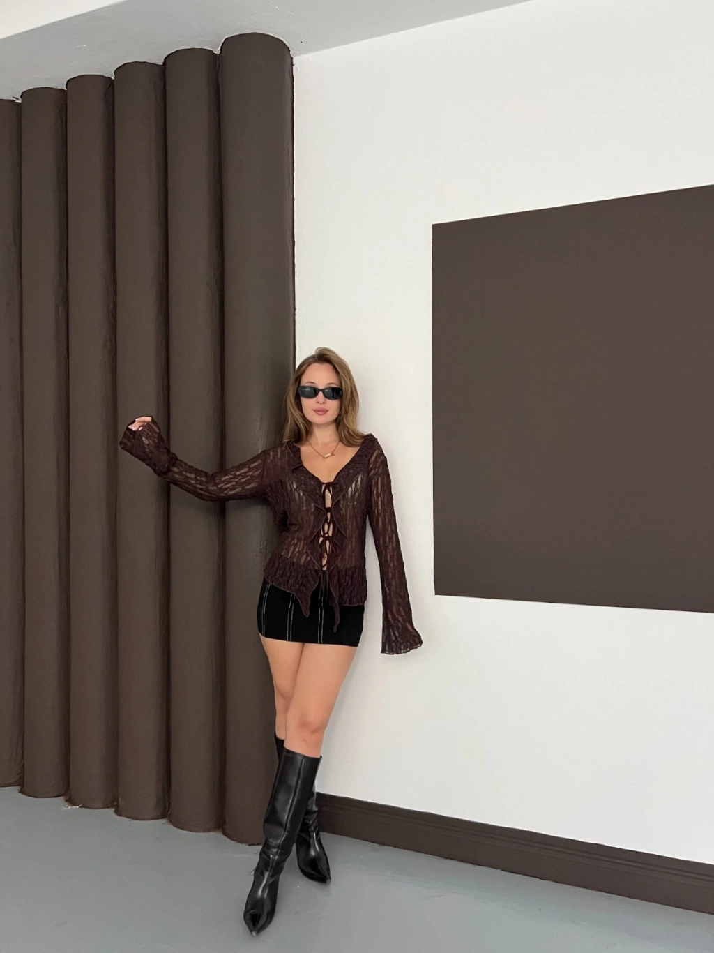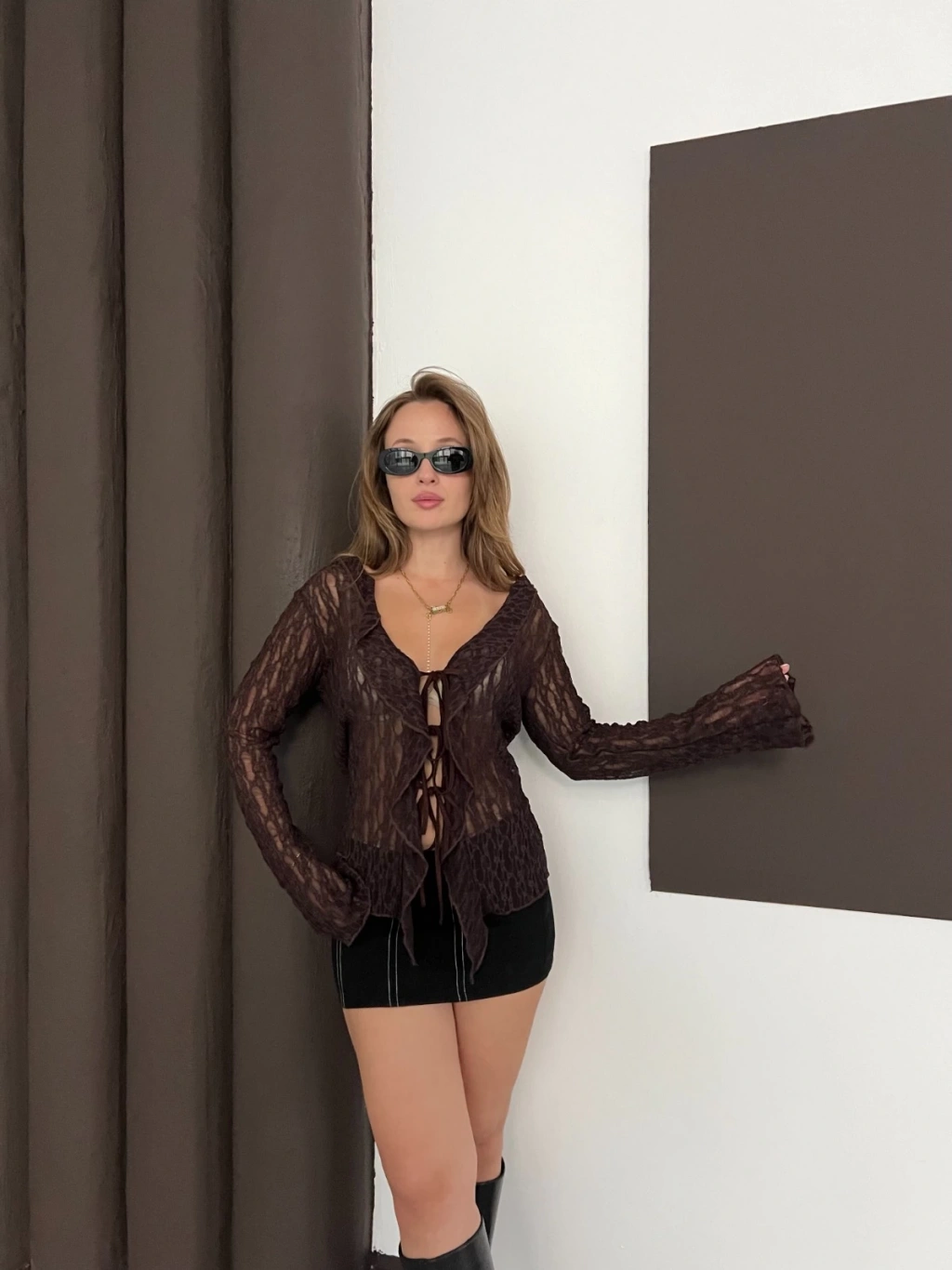 Önden Bağlama Transparan Bluz Kahve