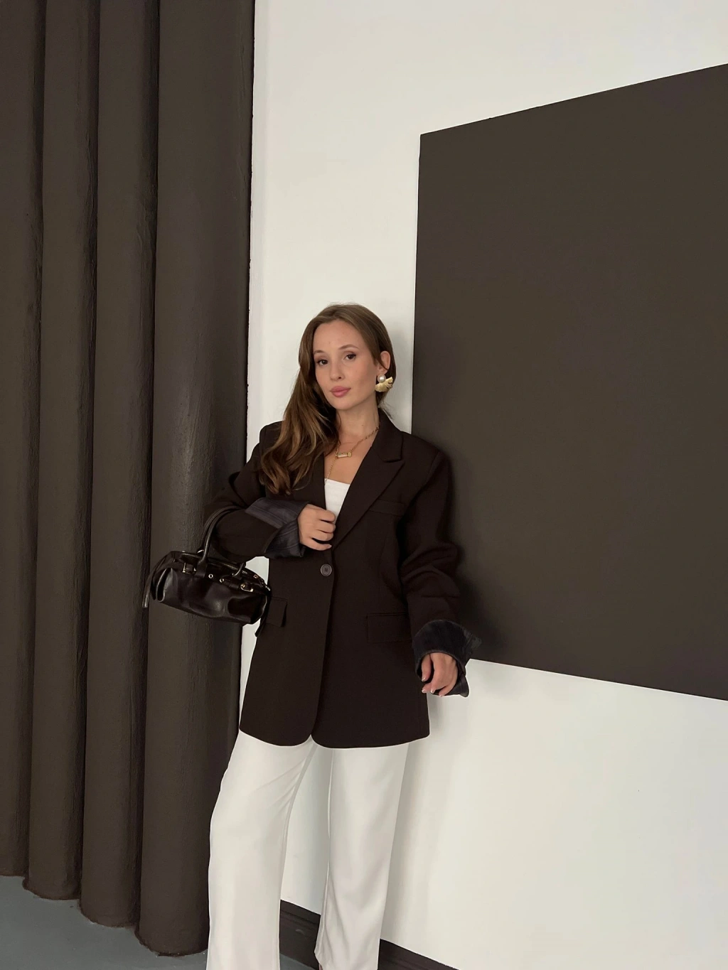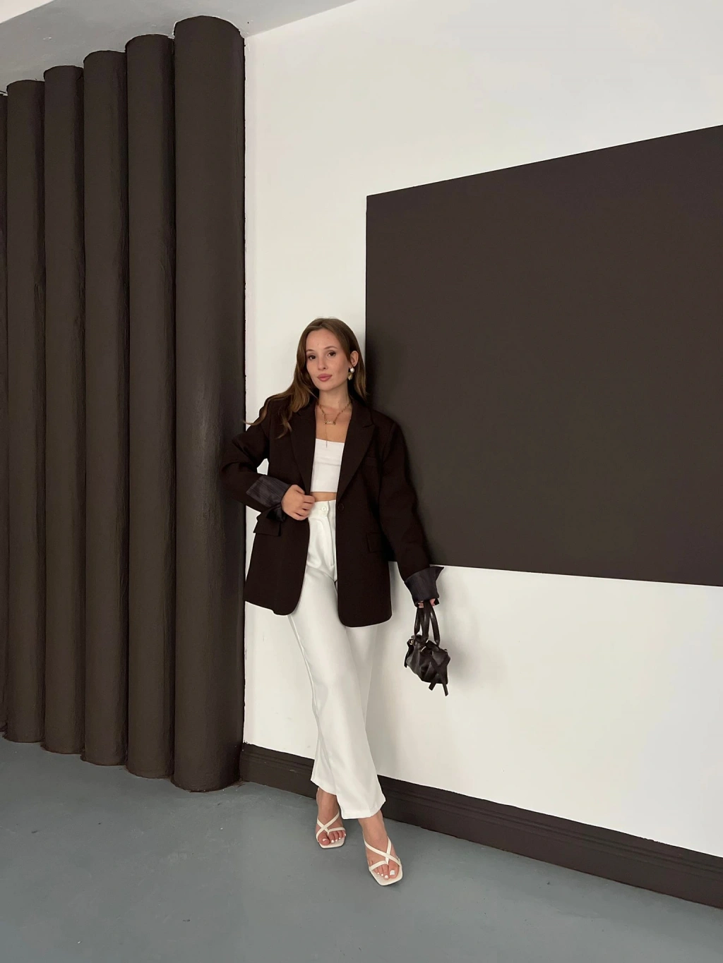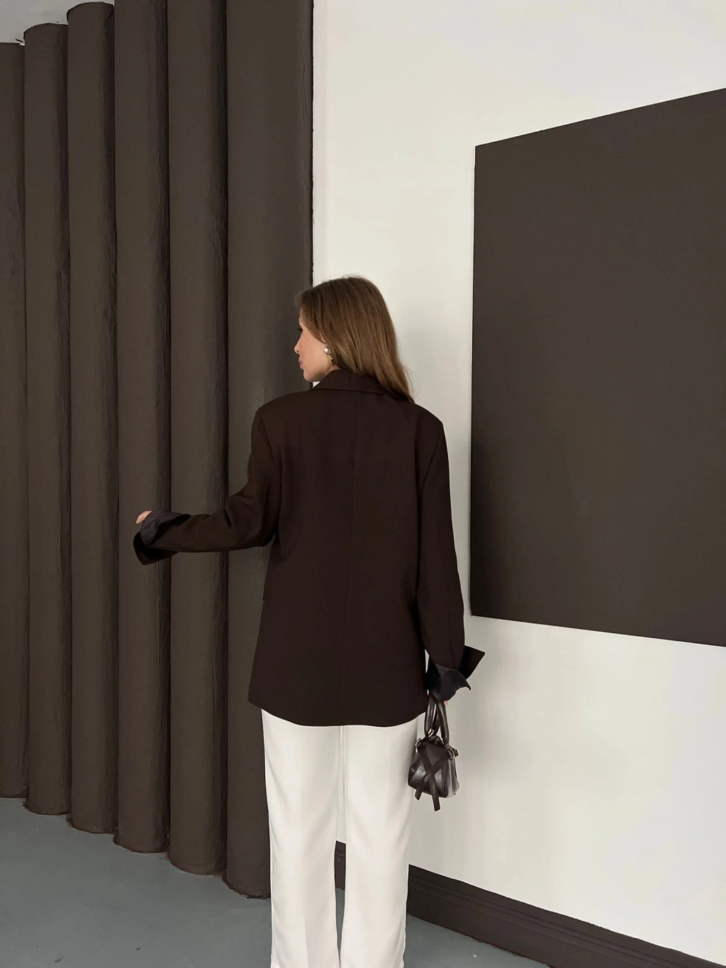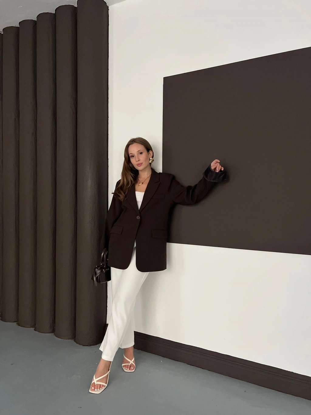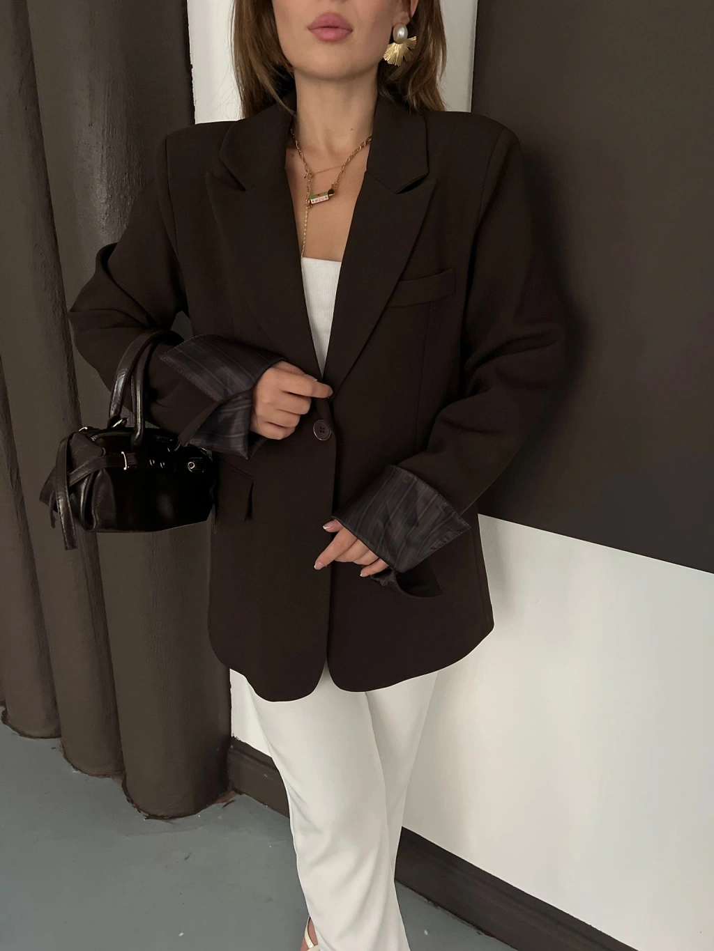 Tek Düğmeli Astar Detaylı Ceket Kahverengi