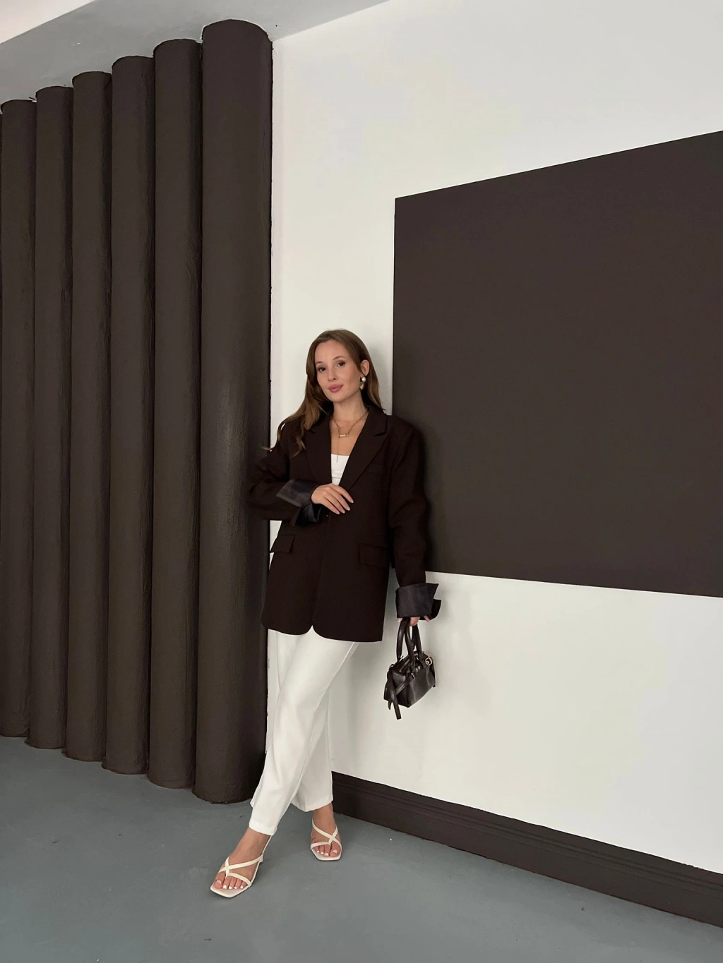 Yaka Düğme Detaylı Rahat Kesim Takım Acı Kahve