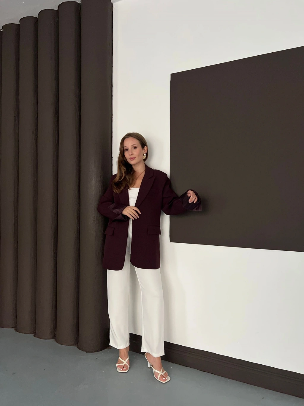 Düğme Detaylı İspanyol Paça İkili Set Bordo