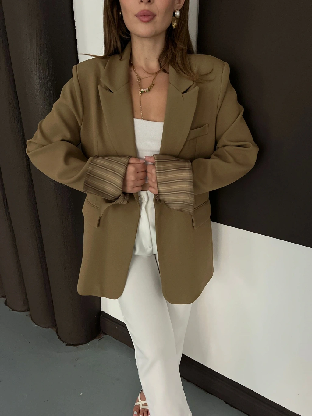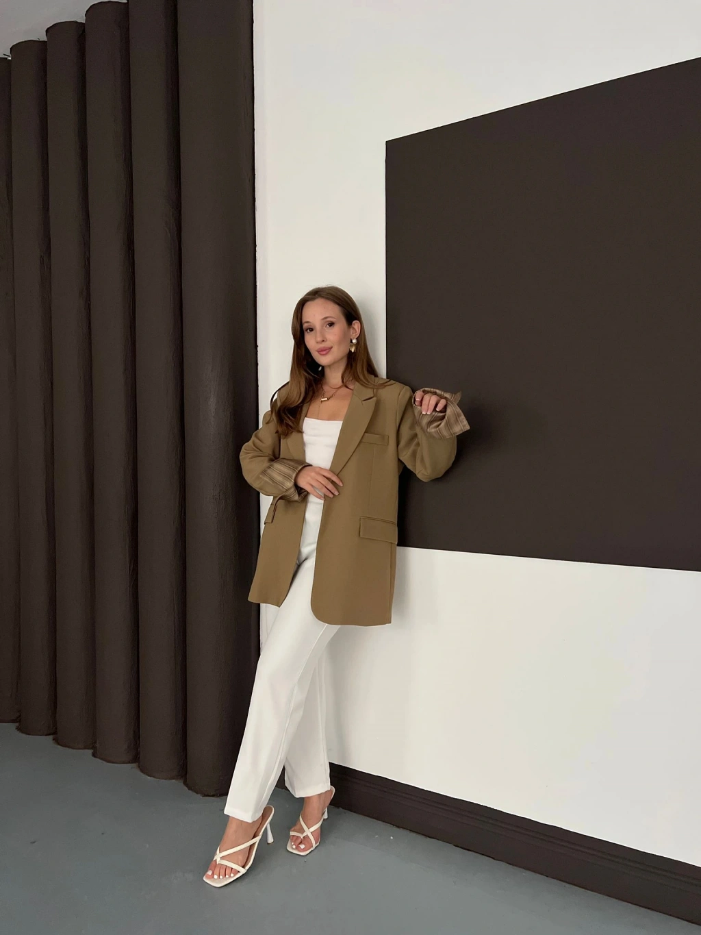 Tek Düğmeli Astar Detaylı Ceket Yağ Yeşili
