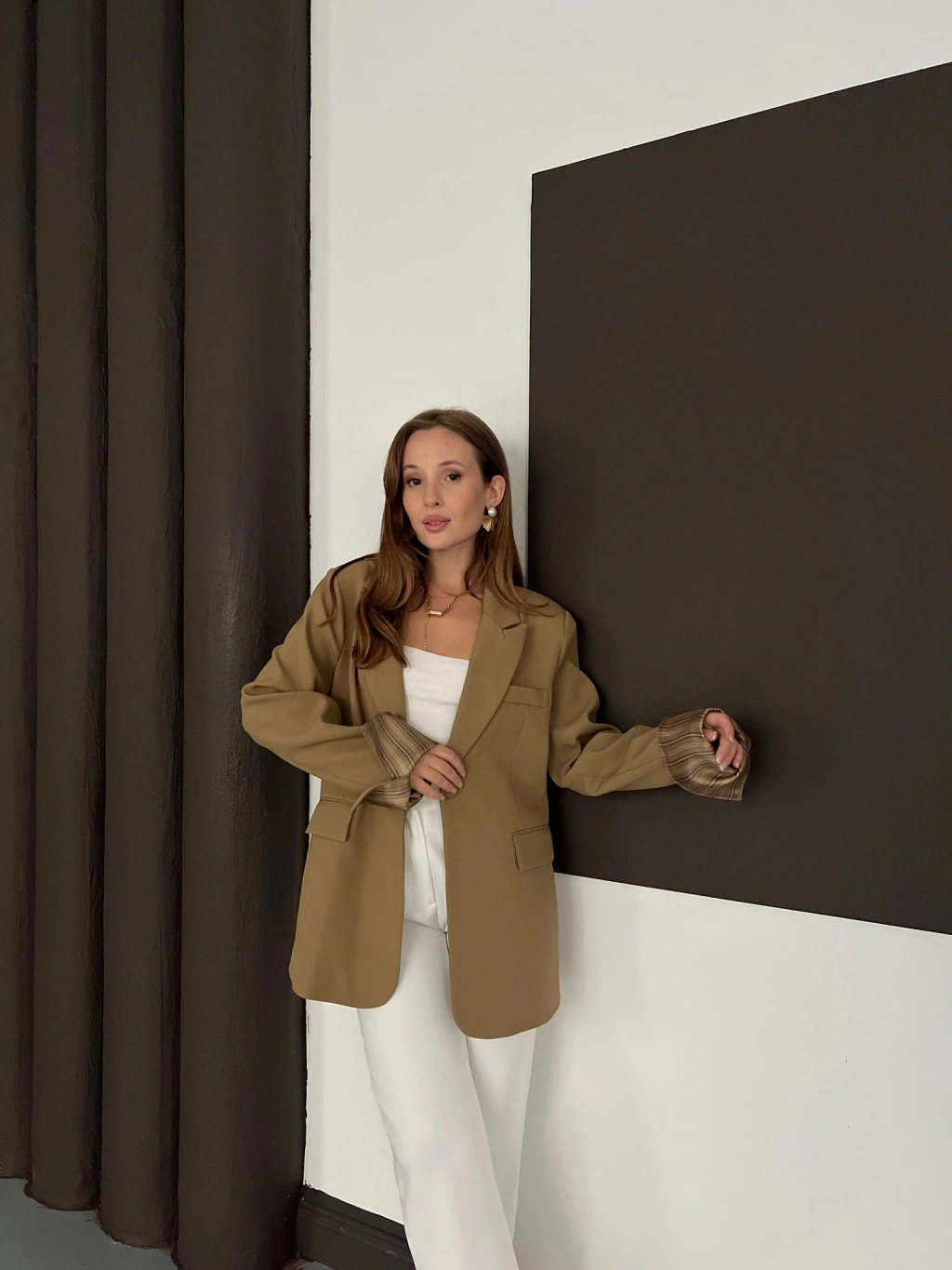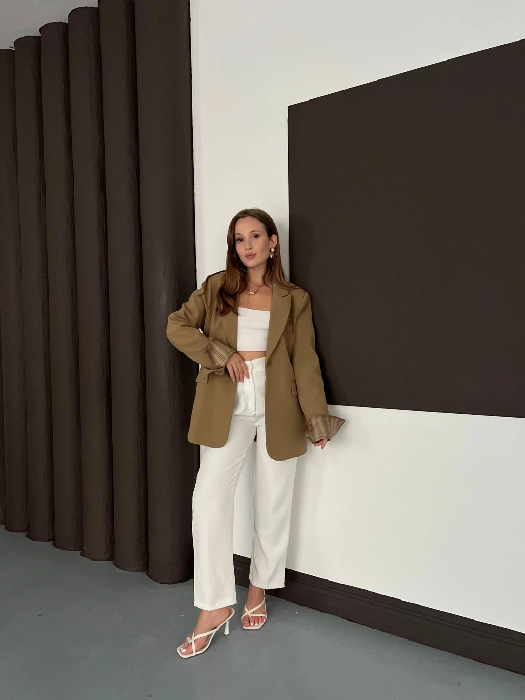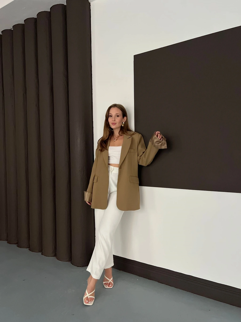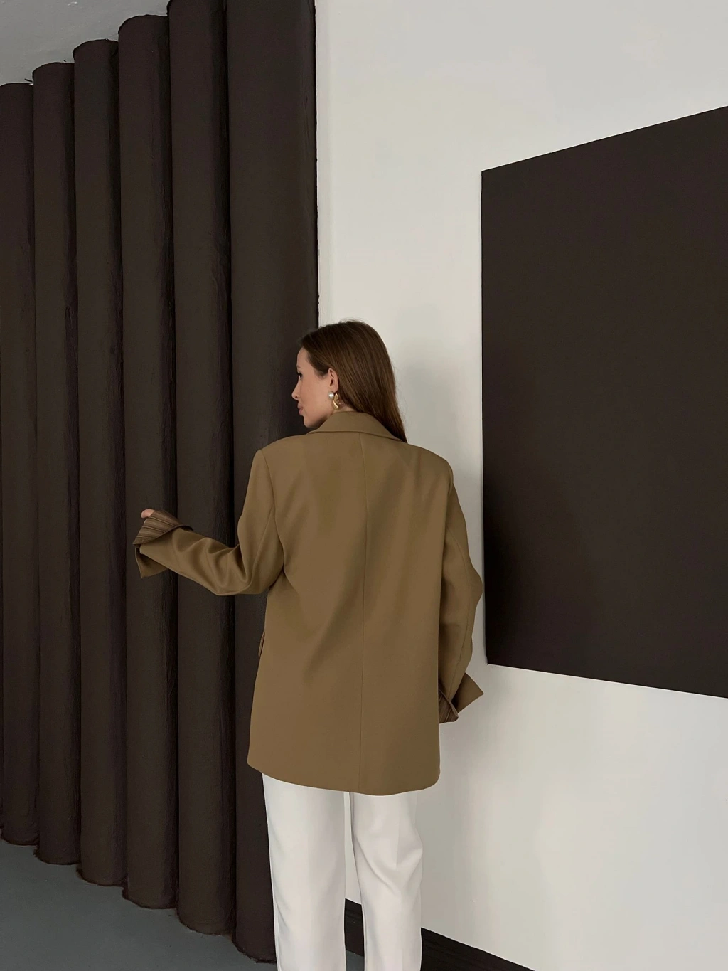 Yaka Düğme Detaylı Rahat Kesim Takım Acı Kahve