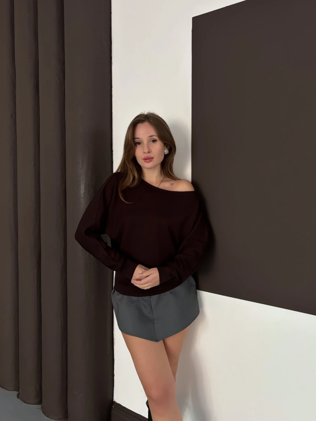Tek Omuz Yarasa Kol Bluz Acı Kahve