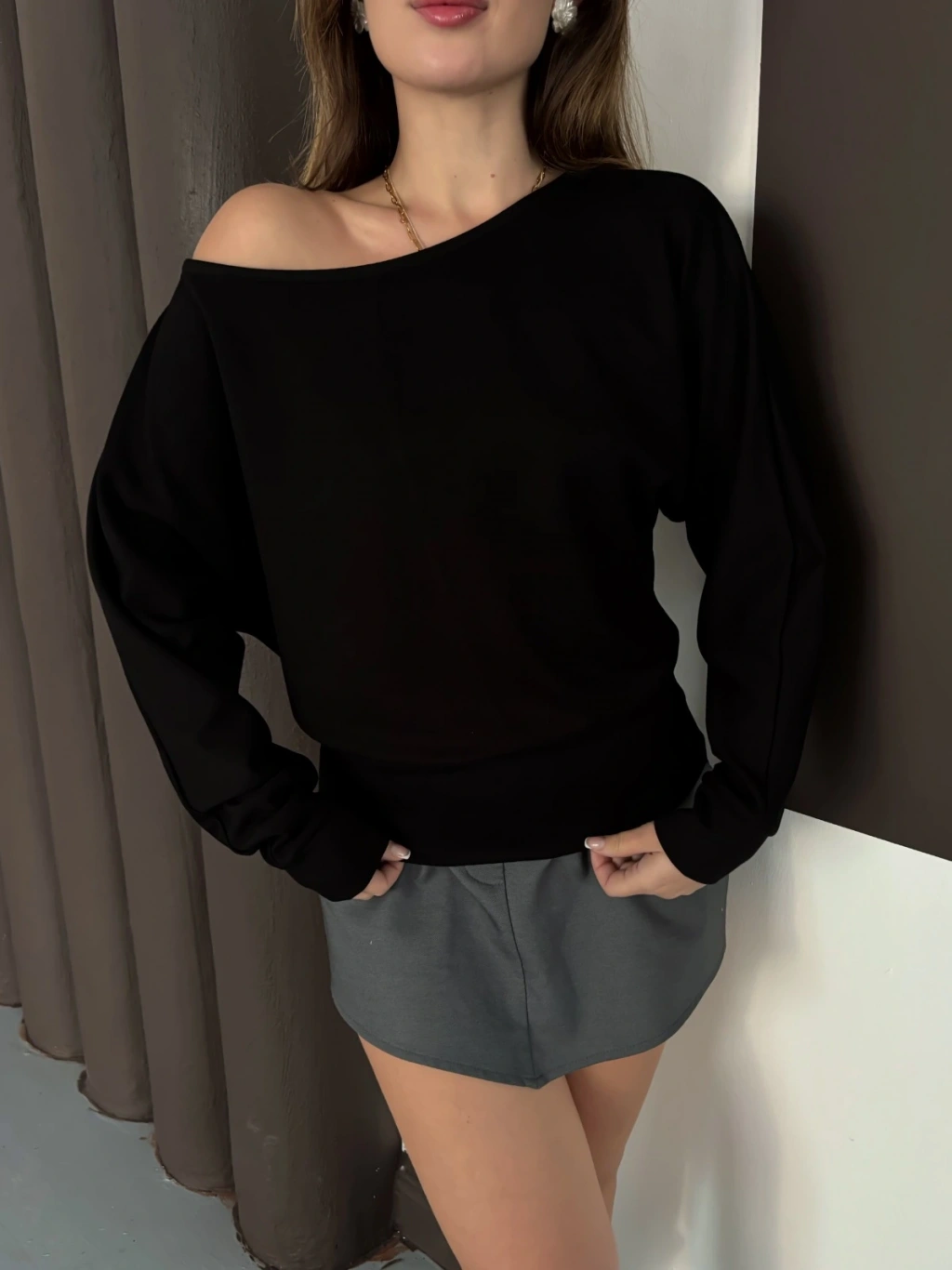 Düğme Detaylı İspanyol Paça İkili Set Siyah