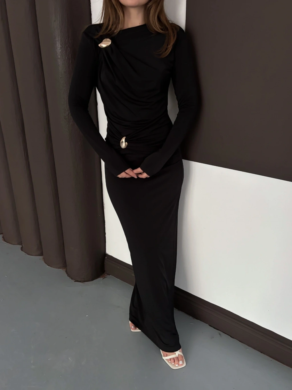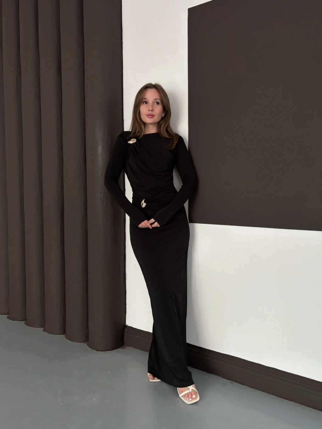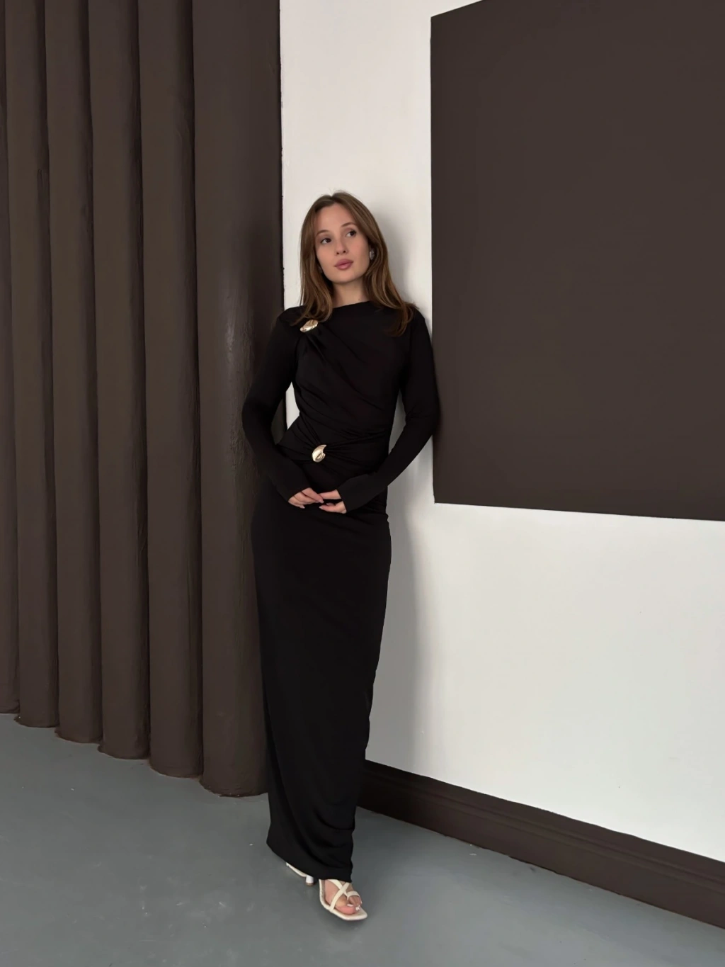 Toka Detaylı Sandy Uzun Elbise
