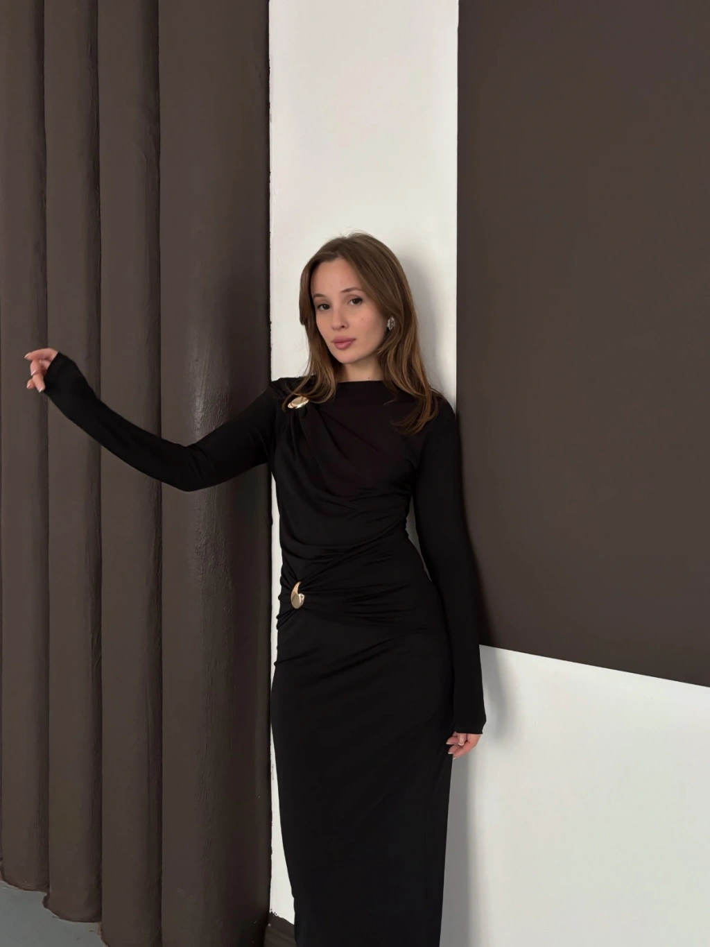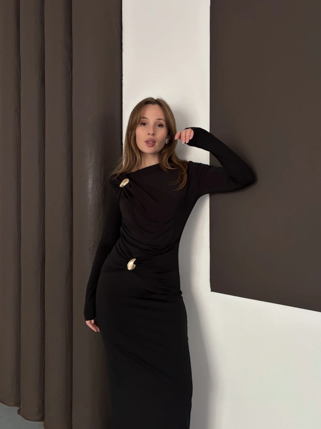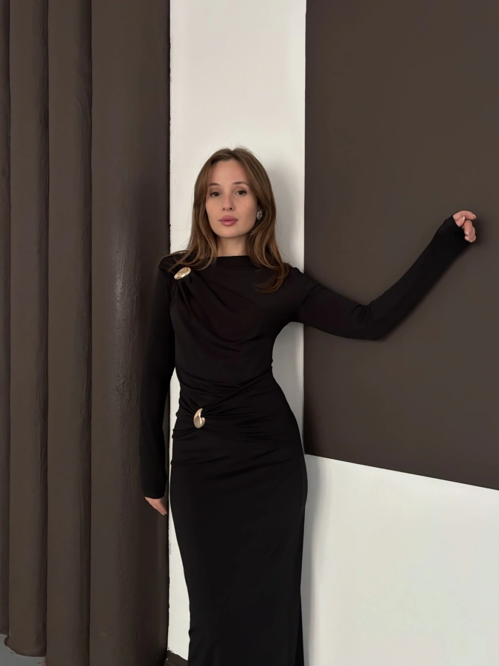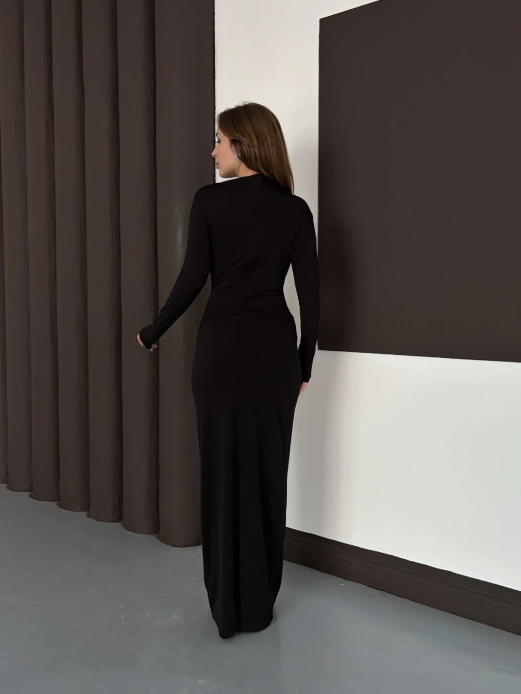 Toka Detaylı Sandy Uzun Elbise