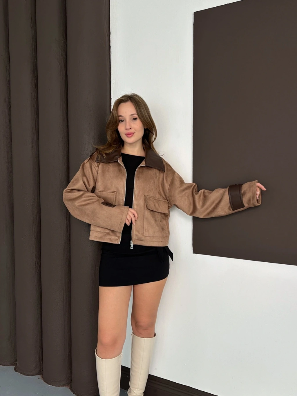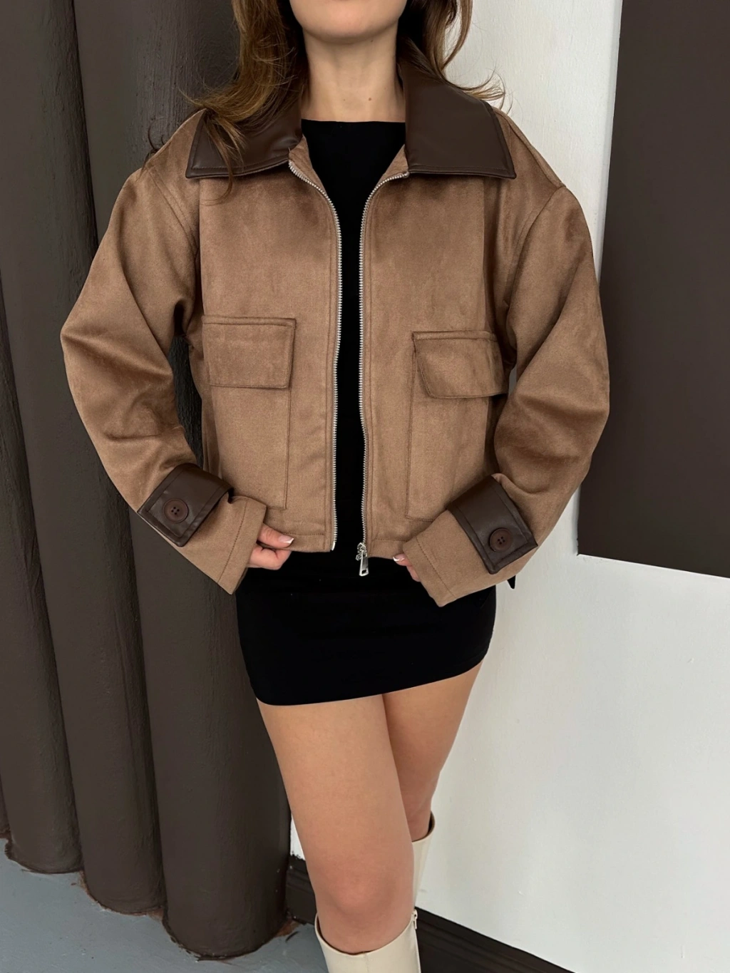 Yaka Kol Detaylı Cepli Nubuk Ceket