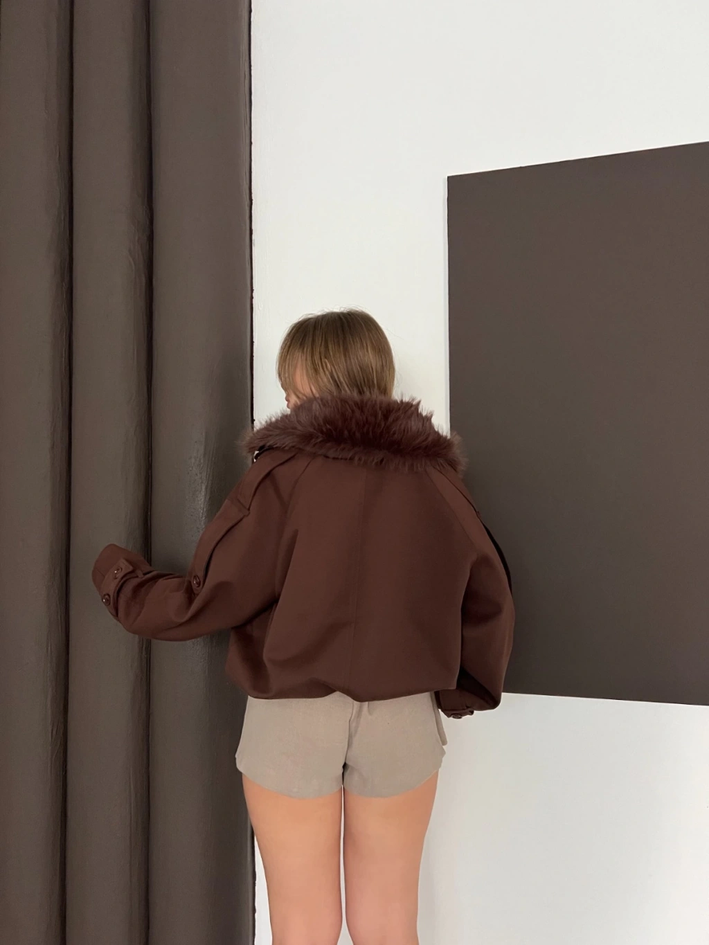 Yaka Peluşlu Bel Lastikli Tasarım Ceket Kahverengi