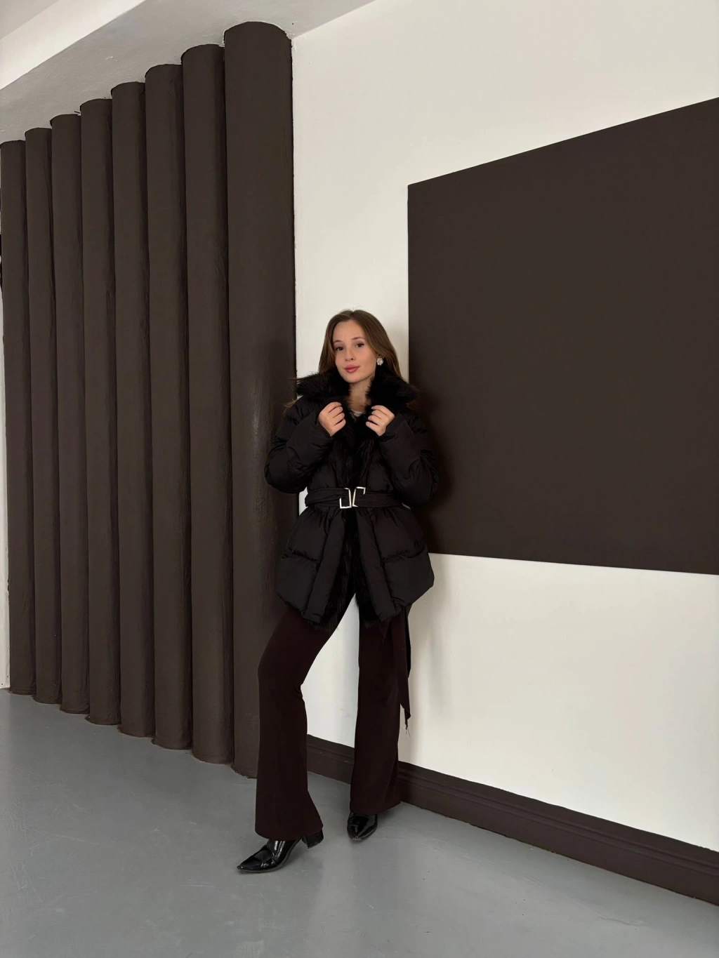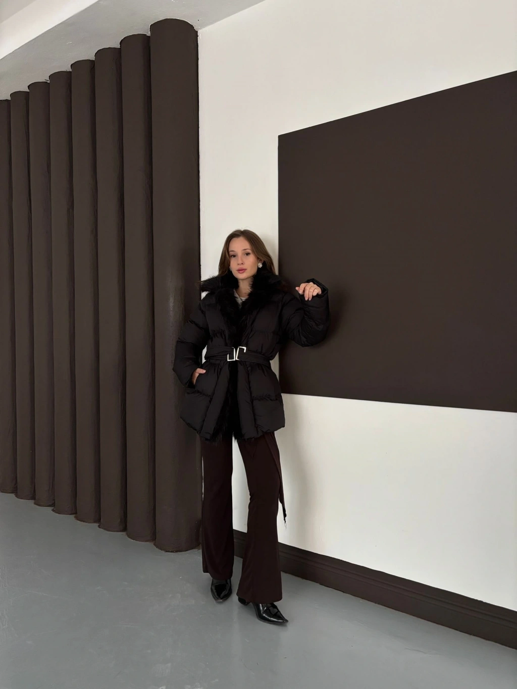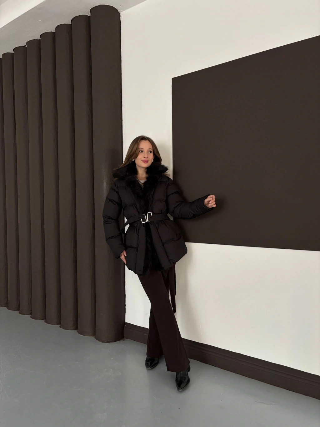 Yaka Peluşlu Kemer Detaylı Şişme Mont