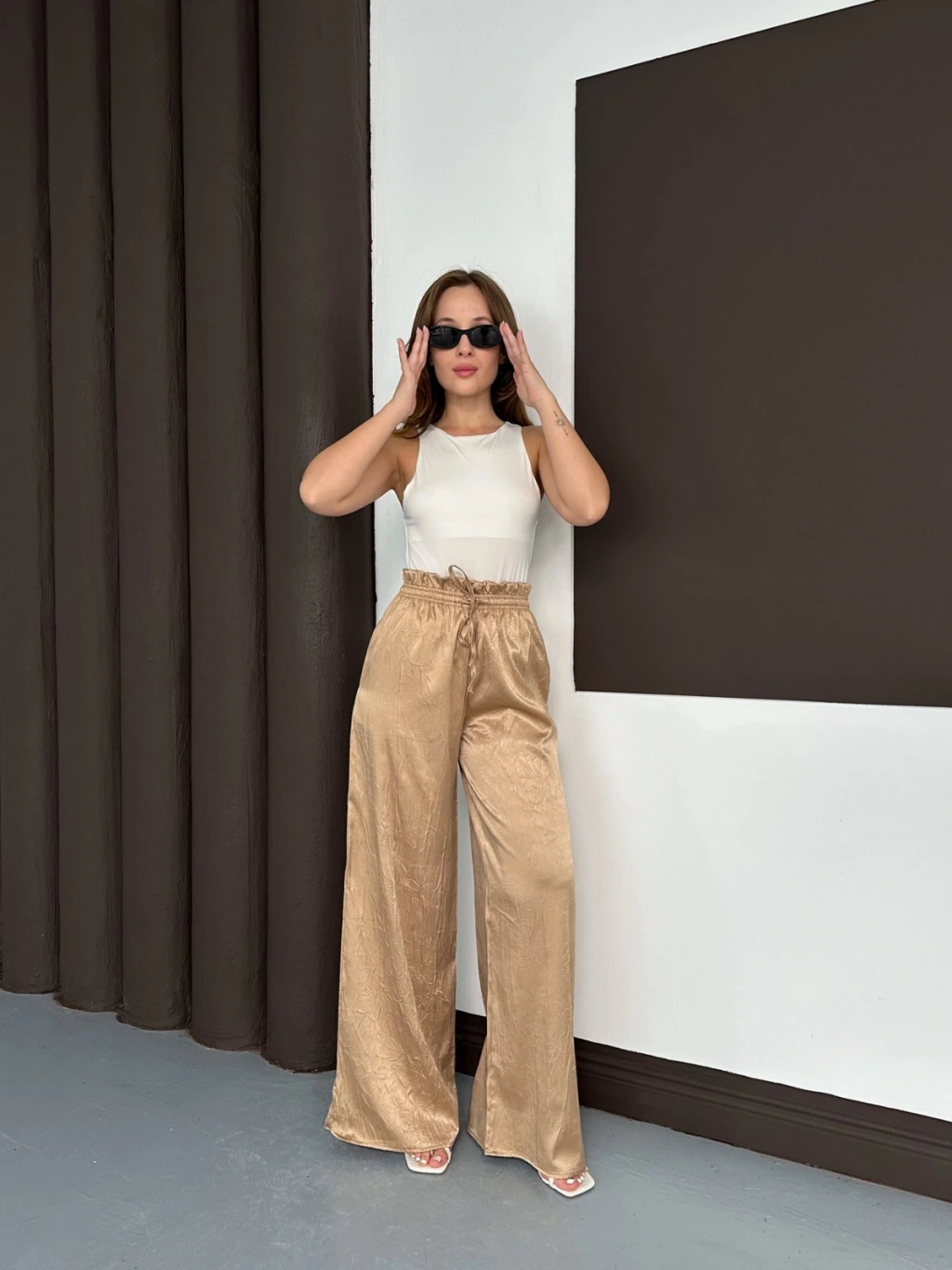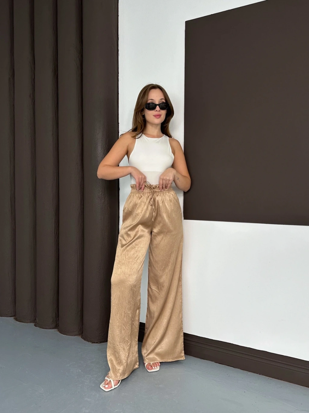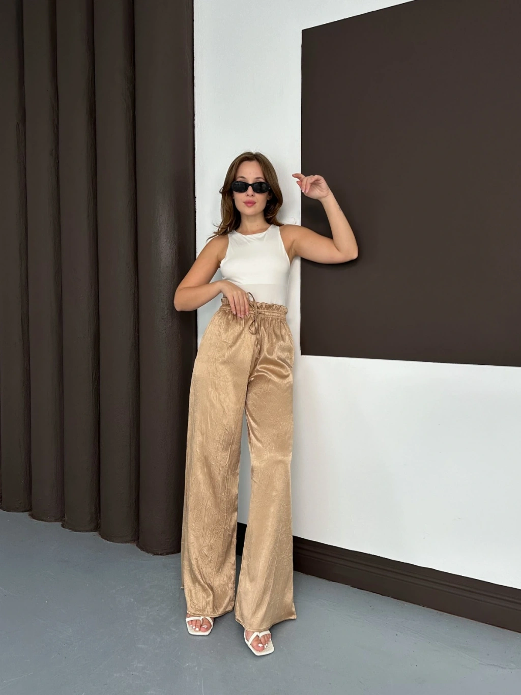 Düğme Detaylı İspanyol Paça İkili Set Kahverengi