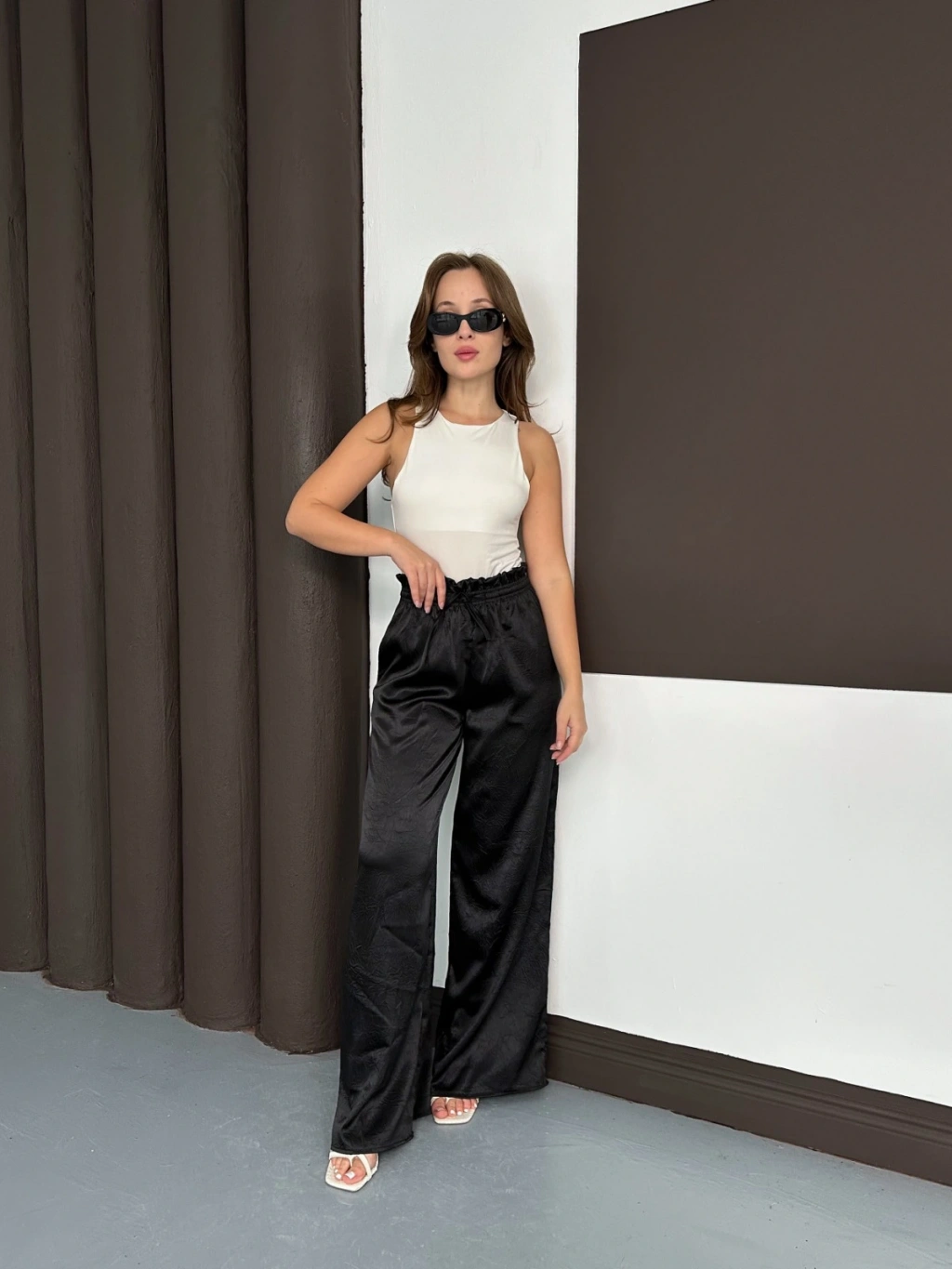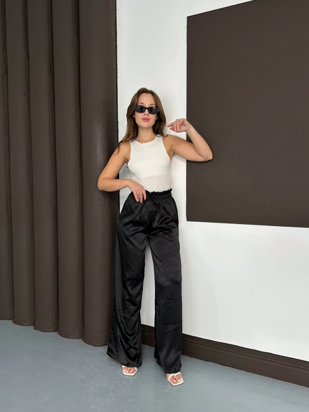 Düğme Detaylı İspanyol Paça İkili Set Siyah