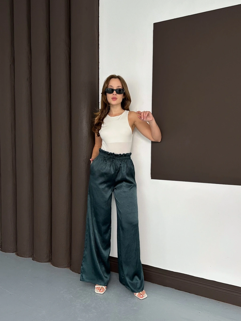 Düğme Detaylı İspanyol Paça İkili Set Bordo